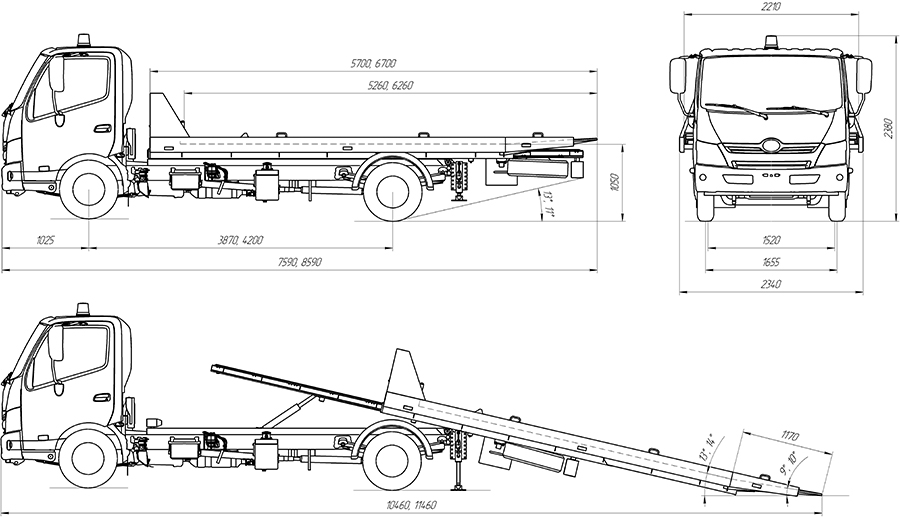 Автомобиль оборудован платформой подъемно-сдвижного типа, сдвижной гидравлической лебедкой и предназначен для эвакуации автомобилей массой до 3,5т. Автомобиль комплектуется набором самозатяжных ремней для фиксации эвакуируемого автомобиля.