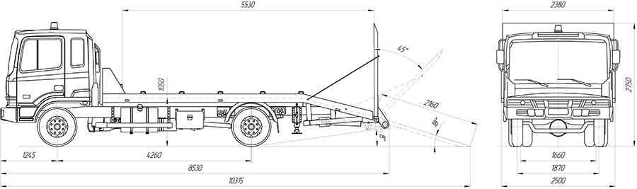 Автомобиль оборудован платформой ломаного типа, профессиональной электрической лебедкой и гидравлической аппарелью. Он предназначен для эвакуации автомобилей массой до 5,6 тонн. Эвакуатор комплектуется набором самозатяжных ремней для фиксации эвакуируемого автомобиля.