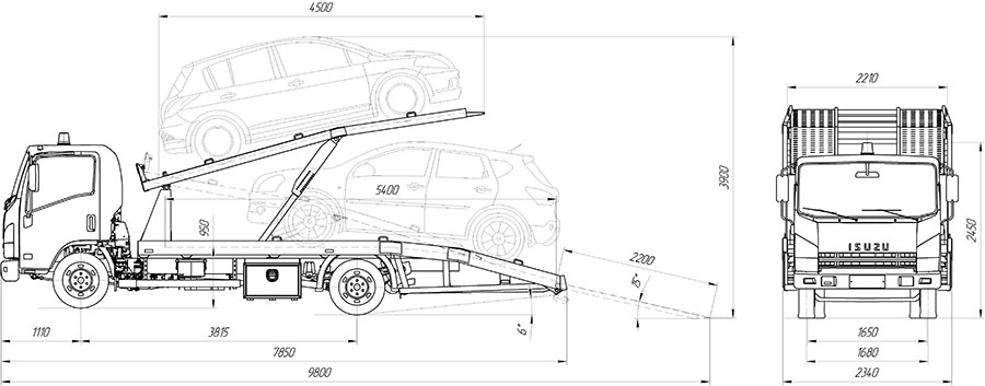 Автомобиль оборудован двумя платформами ломаного типа и сдвижной гидравлической лебедкой. Он предназначен как для эвакуации, так и для транспортировки двух автомобилей. Автомобиль комплектуется двумя наборами самозатяжных ремней для фиксации эвакуируемых автомобилей.