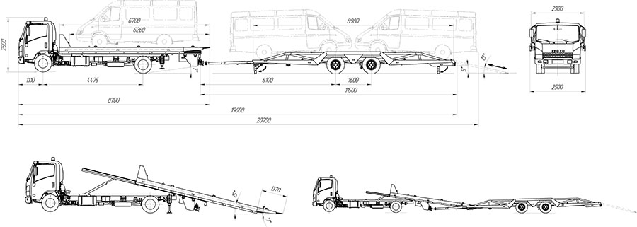 | - длина (с 3-мя автомобилями ГАЗ-2705) | 19650 (20750) | ||