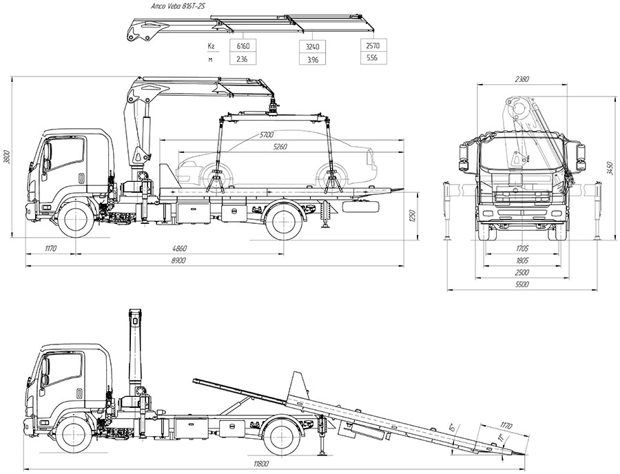 | Грузоподъемность на максимальном вылете, кг | 2570 |