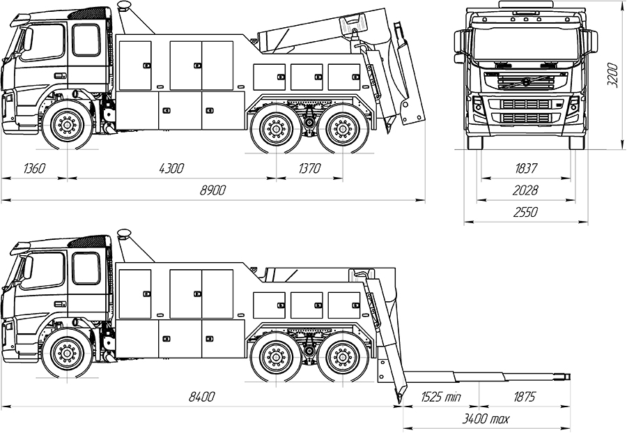 Грузоподъемность автоэвакуатора определяеется исходя из распределения масс по осям базового шасси. Конструктивно допустимая грузоподъемность надстройки составляет 10000 кг на полезном вылете 1535 мм.