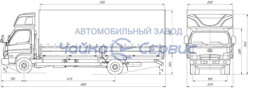 Автомобиль Hyundai-65 оснащён бортовой платформой. Возможна установка каркаса с тентом высотой до 2,2м и объемом до 30 куб.метров. По желанию заказчика автомобиль может быть оборудован тентом с боковой и верхней загрузкой. Возможна установка надкрышного спальника.