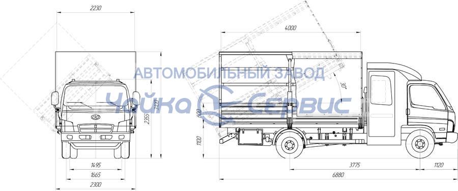 Важным преимуществом автомобиля является двухрядная кабина, которую устанавливает АЗ "Чайка-Сервис". Помимо перевозимого груза, автомобиль также может перевозить небольшую рабочую бригаду из 7 человек.