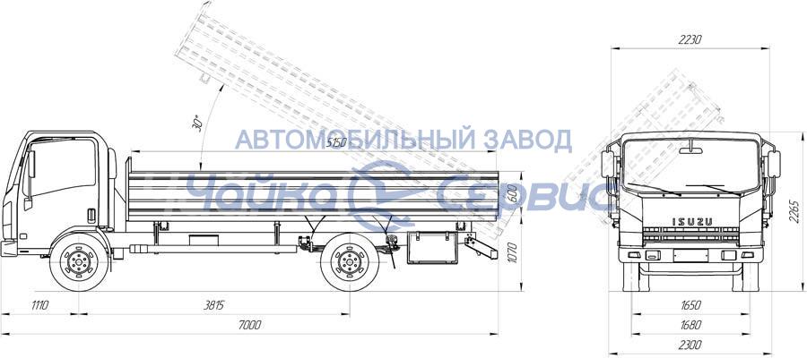 АЗ «Чайка-Сервис» представляет модель нового поколения 4784DZ самосвала Isuzu ELF 7.5 (NPR75L) с трехсторонней разгрузкой. Для производства самосвала использованы самые лучшие материалы: