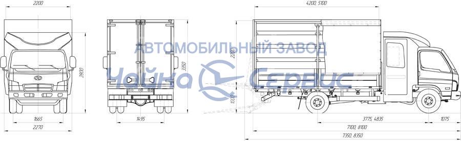 | - высота по кабине / по тенту | 2800 / 3350 | ||||||
