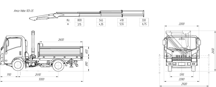 На шасси ISUZU ELF 3.5 S (NLR85) можно устанавливать краны серий "Стандарт" и "Т" с грузовым моментом от 1,00 до 3,10 т*м.