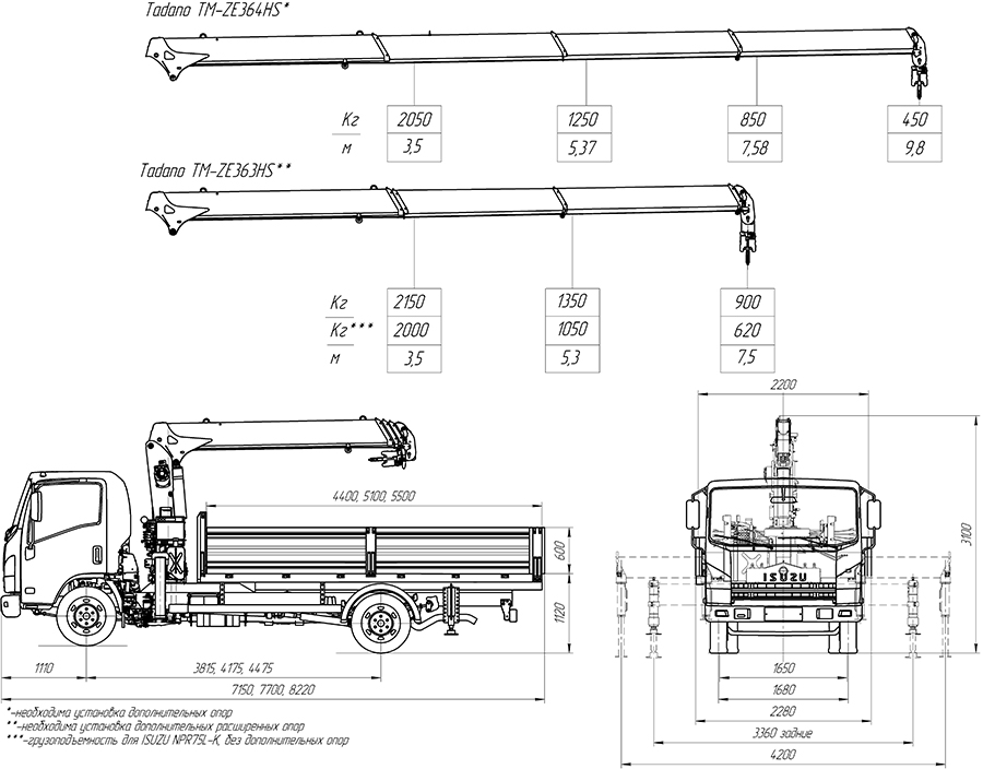| КМУ Чайка-Tadano | TM-ZE363HS | TM-ZE364HS | |||||
