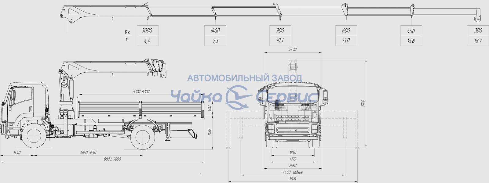 | Грузоподъемность на максимальном вылете стрелы, кг | 300 | |