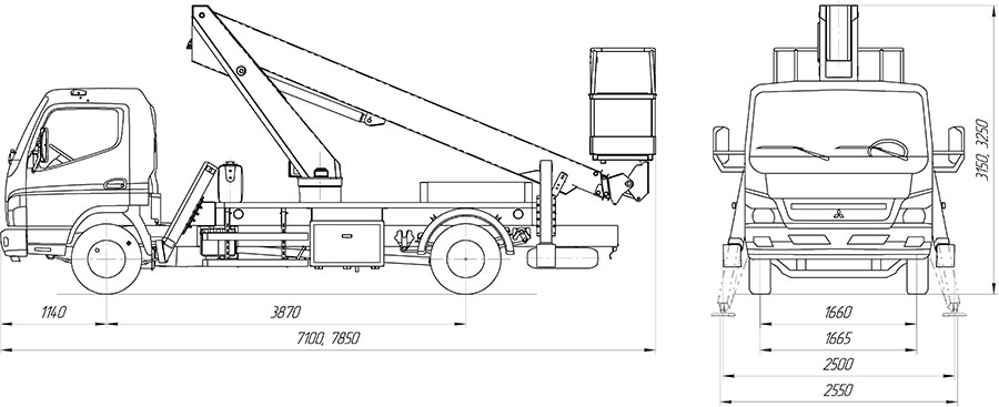 На шасси Mitsubishi FUSO FE85DG установлена автовышка российско-итальянского производства телескопическая T318. Для данной модели характерны следующие показатели: максимальная высота - 18м, максимальный вылет - 10м, максимальная грузоподъемность люльки 300 кг. Подъемник оборудован изолированной люлькой, позволяющей оператору проводить работы на линиях электропередач под напряжением до 2000V без отключения электроэнергии при отсутствии атмосферных осадков.